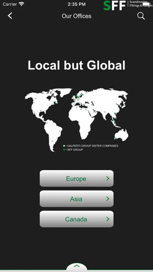 - SFF worldwide locations which includes an integrated map, contacts- and company info, with the option to call, send message to and e-mail SFF employees.