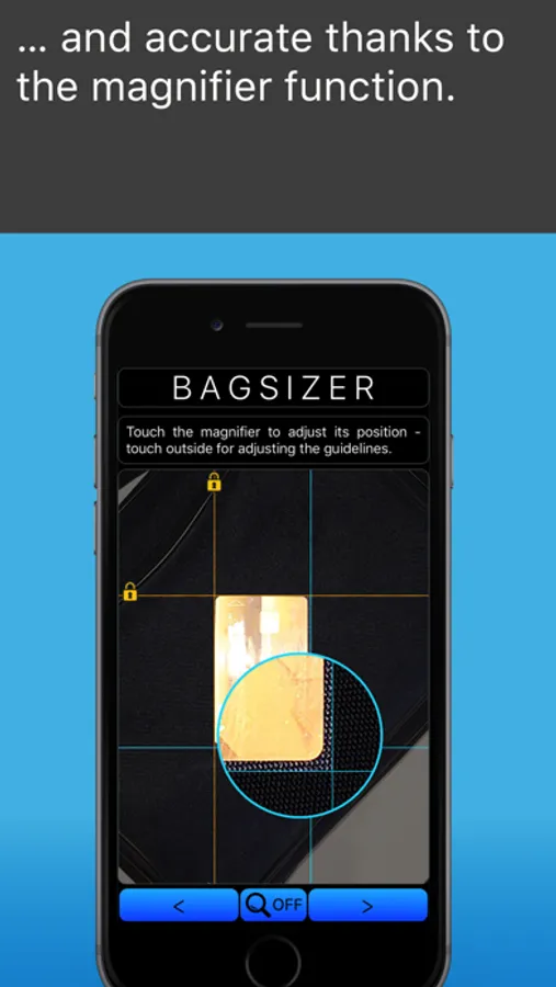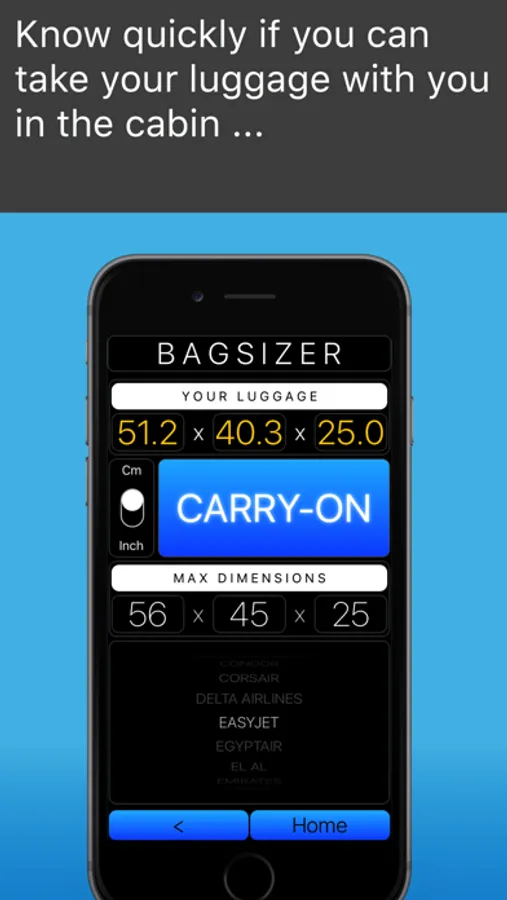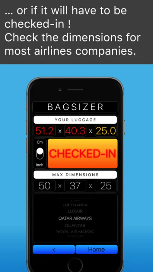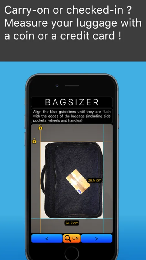- quickly measure the dimensions of your luggage using a credit card or a coin as a gauge and verify if you'll be able to take it in the cabin with you or if it will have to be checked-in, depending on the airline company.