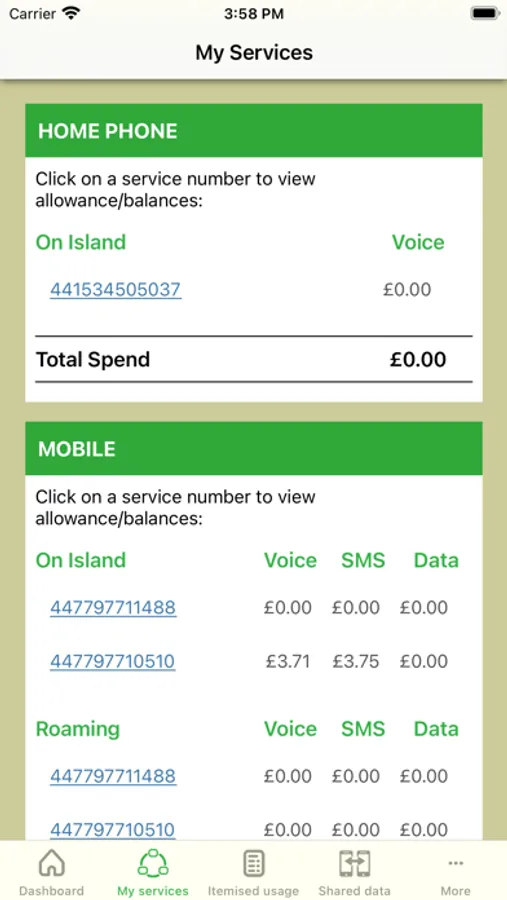 - Keep track of Mobile, Broadband and Landline usage in ‘near’ real time