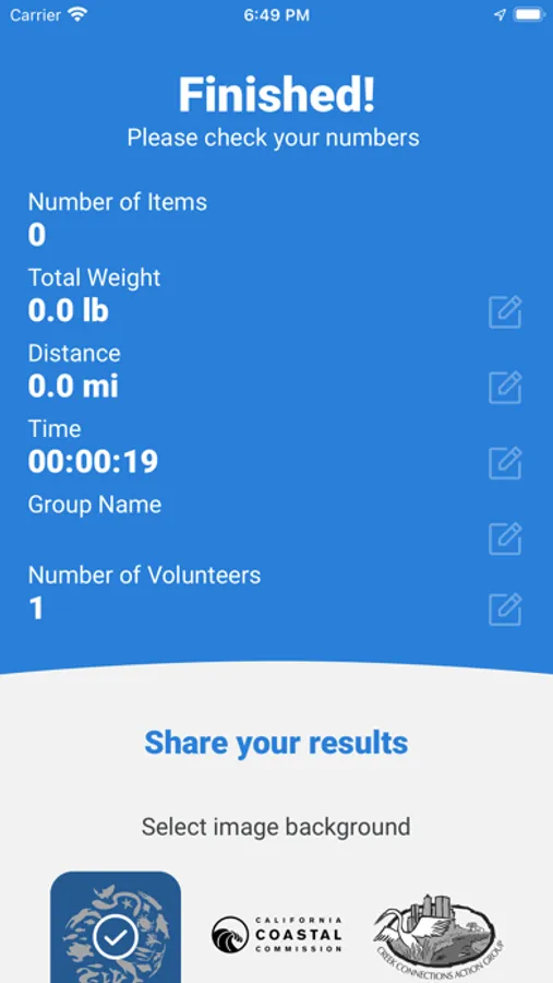 * See the total weight of the trash you collect, track the location of your cleanup (only if you have enabled GPS or Location on your device) and see your total distance cleaned.