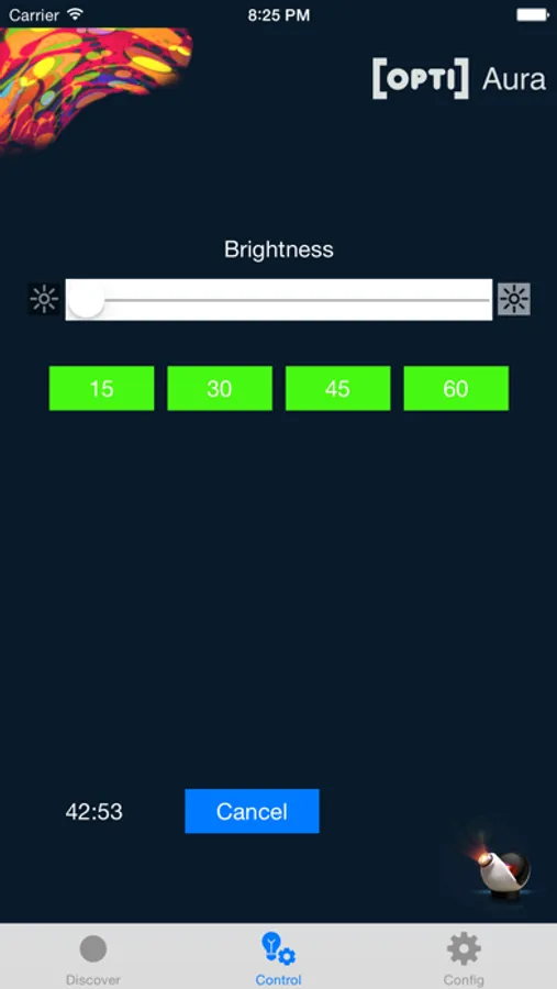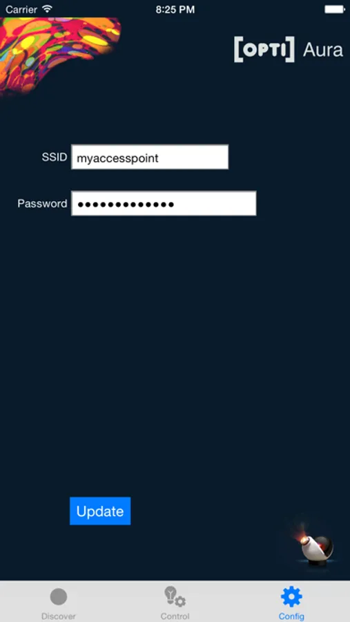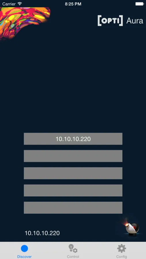 Opti Aura Projector Remote Control. App to remotely control the Opti Aura Wifi enabled dimmable projector from an iOS device.