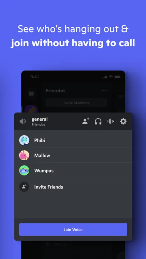 • Voice channels make hanging out easy. Got a free moment? Grab a seat in a voice channel so friends can see you’re around and pop in to talk without having to call. You can even watch videos together!