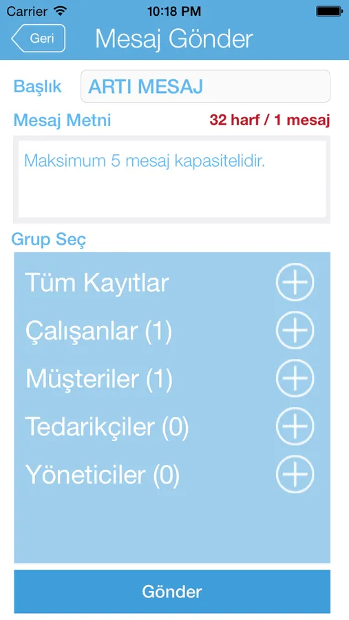 Artı mesajlaşma servislerini gerekli alt yapı sağlandığı takdirde dilerseniz birden fazla kişiye kurumsal toplu mesaj gönderim imkanına sahip olabilirsiniz.Toplu mesaj programı içinde operatör fark etmeksizin hazırlayacağınız mesaj metinlerini gönderebilirsiniz.Artı mesajlaşma programları size uygun tasarım ve tüm hız testlerini gerçekleştirerek eşsiz kullanım kolaylığı sunmaktadır.Artı mesajlaşma servislerini kullanırken size sağlıyacağımız mobil marketing danışmalığımız ile birlikte rakiplerinize fark atabilir mobil marketing araçlarını kullanarak etkin bir pazarlama ağına sahip olabilirsiniz. Artı mesajlaşma çözümleri tüm müşterilerimizin sistemlerine katkı sağlayıp onlara fayda sağlama üzerine kurgulanmıştır. Servis orta ve uzun vadede müşteri memnuniyeti üzerine kurulmuş önce müşteri memnuniyeti felsefini benimsemiştir.