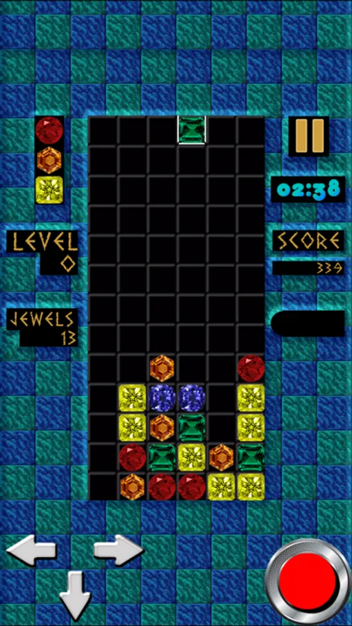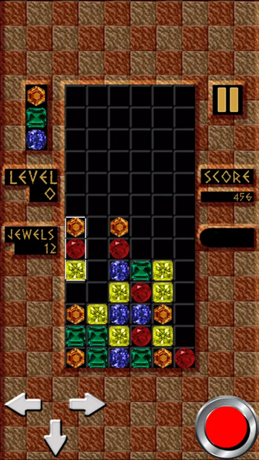 Each of the pieces that appear are formed by three jewels which can be rotated by pressing the button on the right side. Our goal is to match three or more jewels of the same type both horizontally, vertically or diagonally.