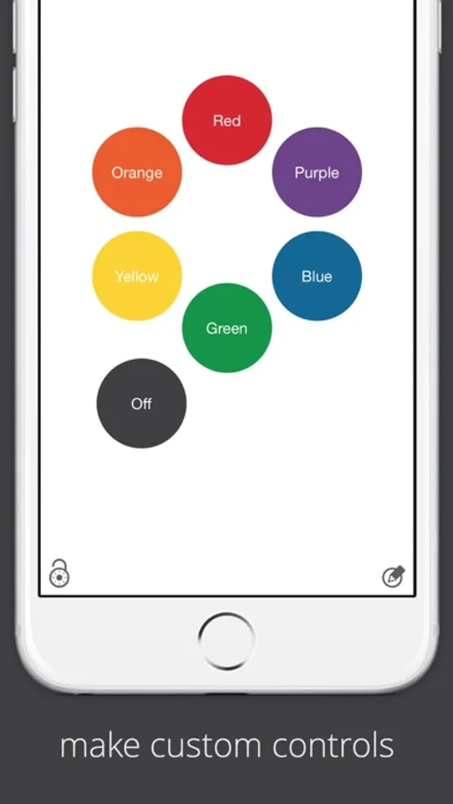 Easily design your own iPhone app without complicated iOS programming, then add a few simple commands to communicate with the LightBlue Bean through BLE (Bluetooth Low Energy). Buttons can be customized with different colors and text and then moved around the screen any way you would like. Set a command that you want sent to your device for each button. Then just power on your LightBlue Bean, tap to connect and control your Arduino project. It is as simple as that!