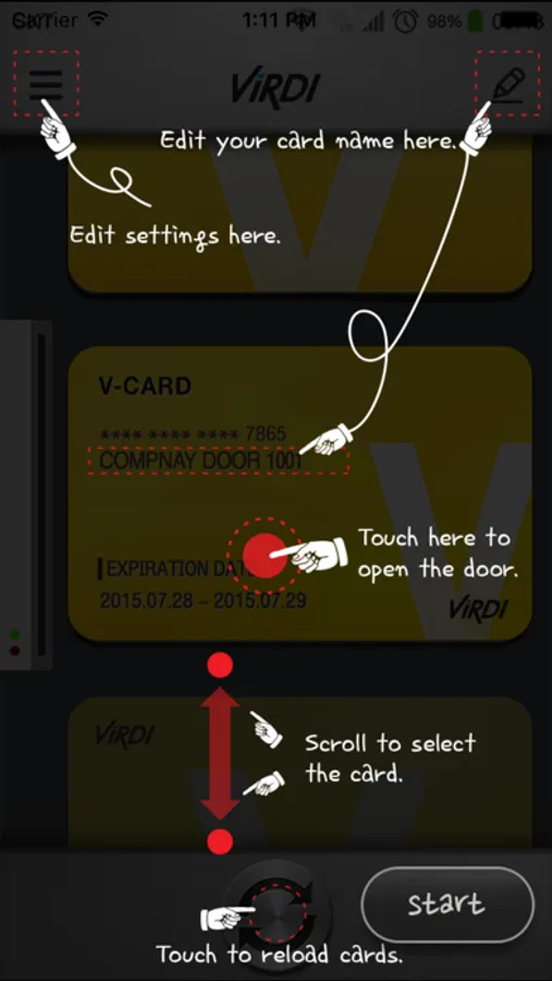 - [Virdi Mobile Card] is a Bluetooth-enabled application for the users and its only role is to simply open the door!