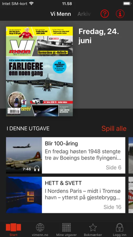 På Vimennpluss får du tilgang til alle utgavene av Vi Menn helt tilbake til 1951. Alle utgaver er tilgjengelige og søkbare. I tillegg til det historiske arkivet får du hver uke tilgang til den ferskeste utgaven av Vi Menn.