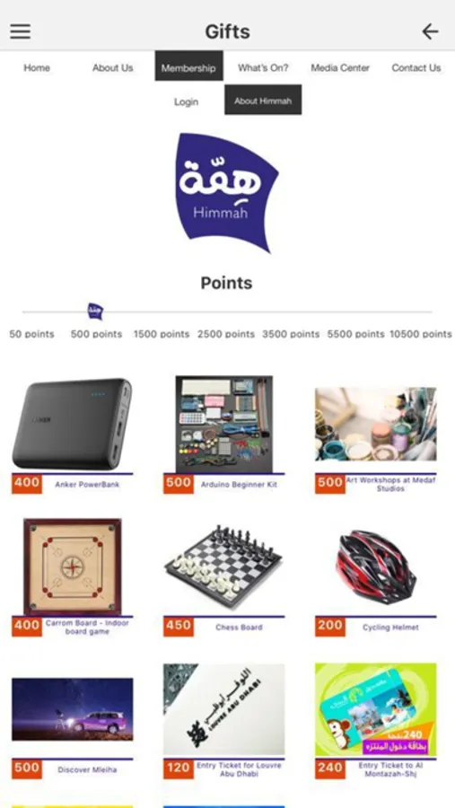 Himmah is a membership and loyalty card for the members of Sharjah Youth, it provides them by a package of advantages and discounts in various shopping centers in the state , also they gain points against attending and participating in the diffirent activities and they may replace such points by various incentives and gifts that suits their ages.
