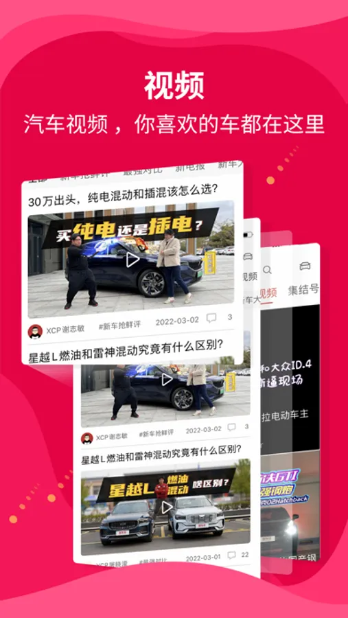 原创视频:试驾评测、乱弹不乱谈、凹凸用车等众多原创视频节目,幽默又不失专业的风格,让你了解每一辆汽车。