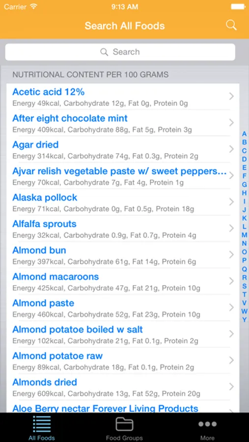 Find Food Content such as Calories, Carbohydrate, Fat, Protein, Vitamins and Minerals with this Complete Nutritional Information Database App