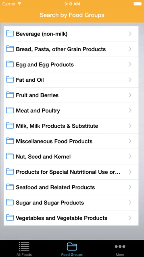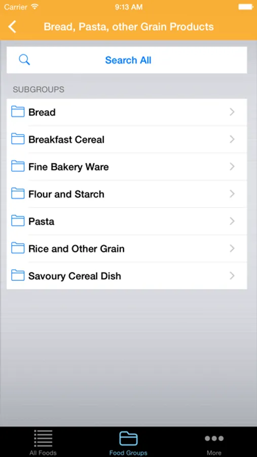 • Search by Free Text or Food Groups (13 Main Groups and over 80 Subgroups)