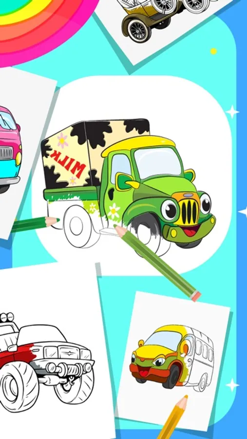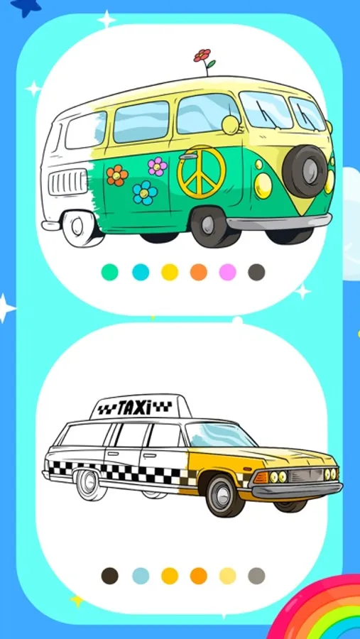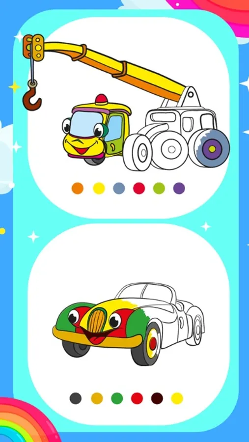 Discover the amazing world of the cars and the other vehicles. Color the best drawings of your favorite vehicles. An addictive game for all!
