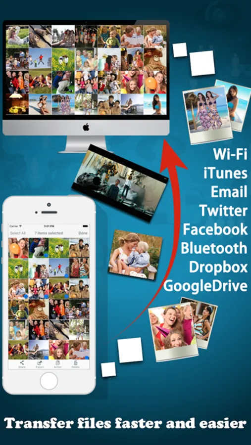 • Share photos to Facebook, Twitter, Sina Weibo, Wei Chat, Instagram, Email, Text Message…