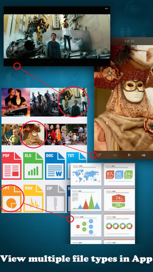 • Document Viewer: view pdf, doc/docx, ppt/pptx, xls/xlsx, txt, rtf ...