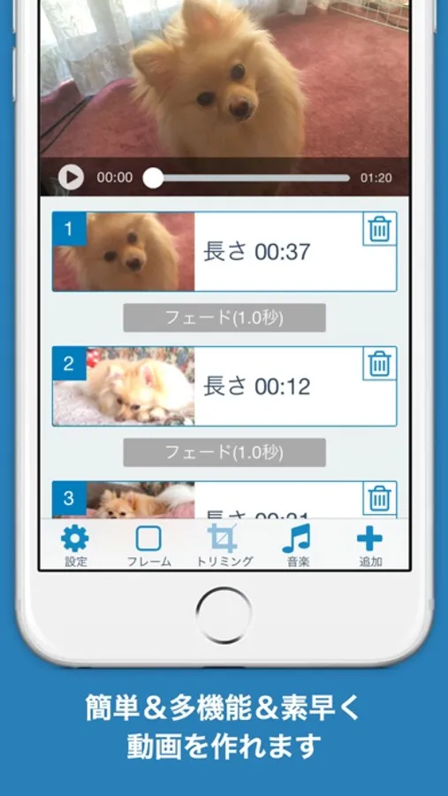 取り込んだ動画/写真はトリミング(任意の範囲を切り取って)が出来ます。