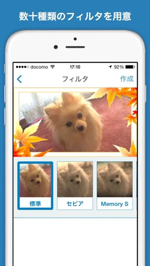動画に複数(セピア、モノクロ、シャープなど)のフィルタを適用することができます。