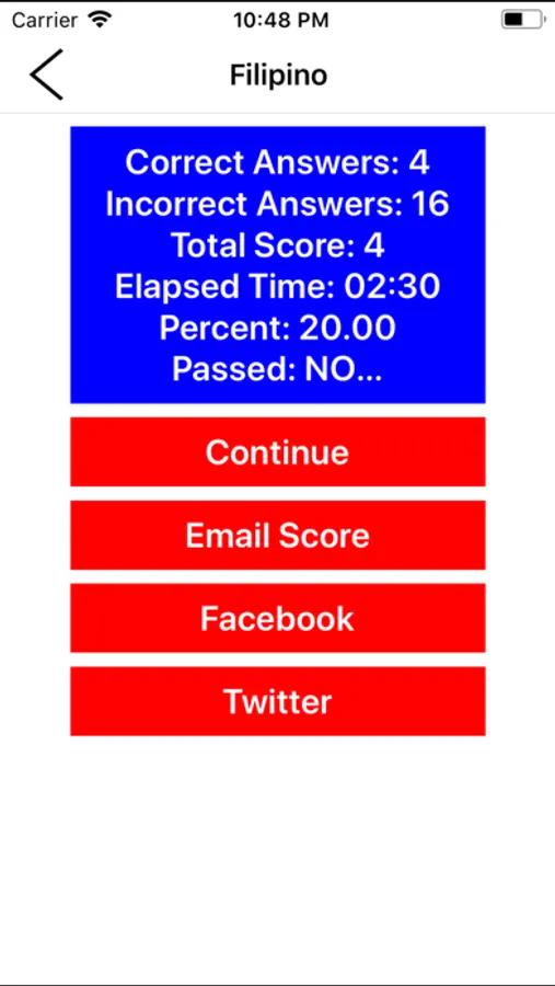 * Capability to quickly share quiz score via e-mail, Twitter, and Facebook