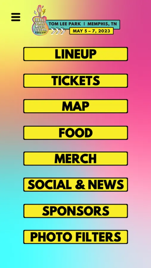 The BSMF 2023 app is your official guide for everything you need to know for Beale Street Music festival. The app helps you organize the lineup, map out an unforgettable weekend, keep tabs on stage times, receive updates before and during the festival, and more!