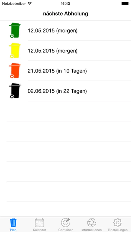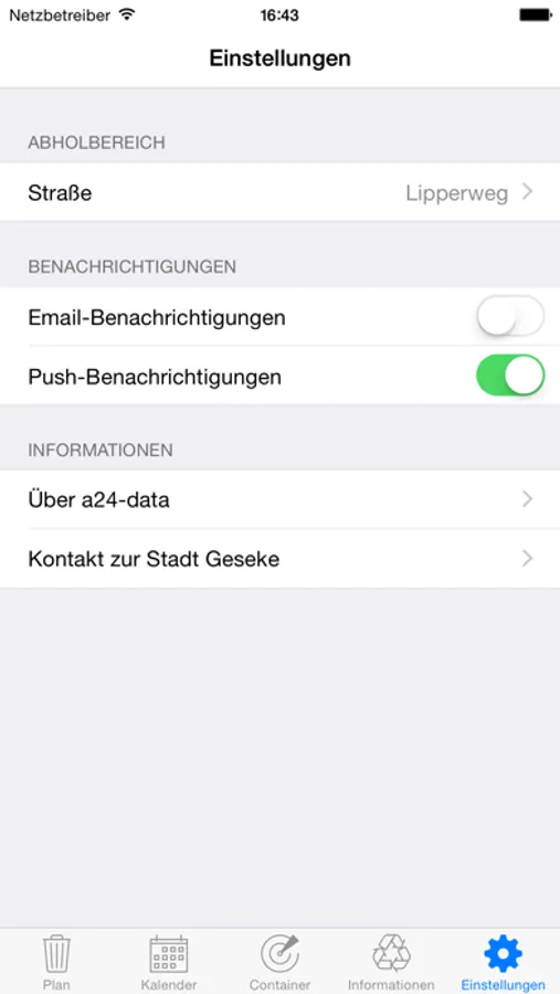 Die App für den Abfallkalender in Geseke - wählen Sie einfach Ihre Straße und Sie bekommen automatisch die zugehörigen Abholungen der Mülltonnen angezeigt. Außerdem finden Sie in der App sowohl Informationen zu den Standorten der Glascontainer in Ihrer Umgebung, als auch zu den Entsorgungsmöglichkeiten von Sperrmüll und Sonderabfällen am Wertstoffhof.