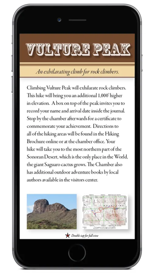 This interactive visitor’s guide for Wickenburg, Arizona is full of information that will help you plan your visit to Wickenburg in an interactive and engaging way. The app contains informative videos, beautiful photography, virtual reality, interactive maps, and more. Whether it’s learning about one of Wickenburg’s scenic golf courses, enjoying the annual heritage events held throughout the year, or learning more about the history of Wickenburg, this app will help you plan your vacation to historic Wickenburg, AZ.