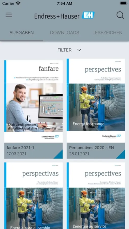 The Endress+Hauser Kiosk app offers you a convenient way to access our digital customer magazines from anywhere in the world. You can read the editions offline or online and in portrait or landscape format. Useful features such as bookmarks, full-text search and pure text mode enrich the individual quality of the reading experience on your mobile device.