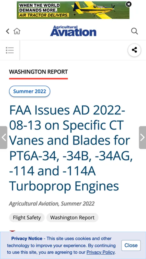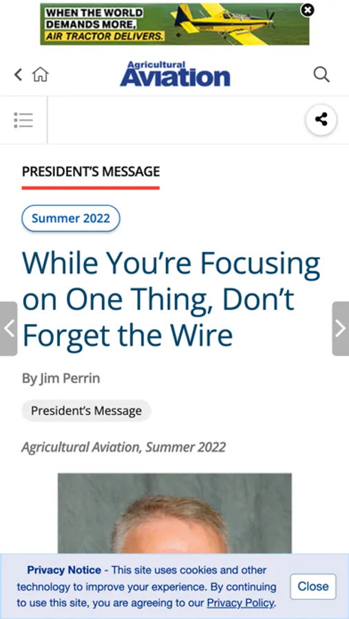 Agricultural aviation is an important part of the overall aviation and agriculture industries. Whether you are in the industry or simply interested in learning more about it, with NAAA’s Agricultural Aviation magazine app, you’ll be able to enjoy the industry’s premiere magazine whenever and wherever you want, right on your mobile device. You won’t just be getting a replica of the print edition either. The digital-friendly format of the Agricultural Aviation magazine app delivers a superior reading experience by adapting content to your device. Trust us, it’s pretty sweet. And it’s free!