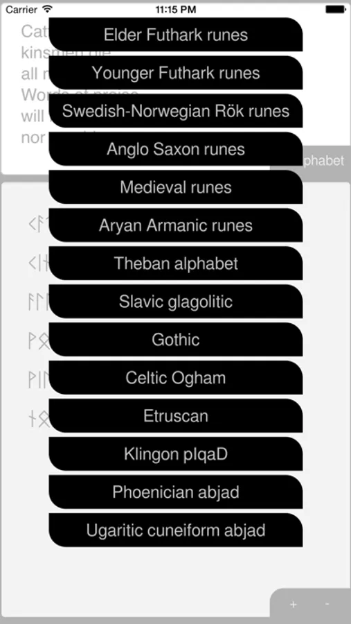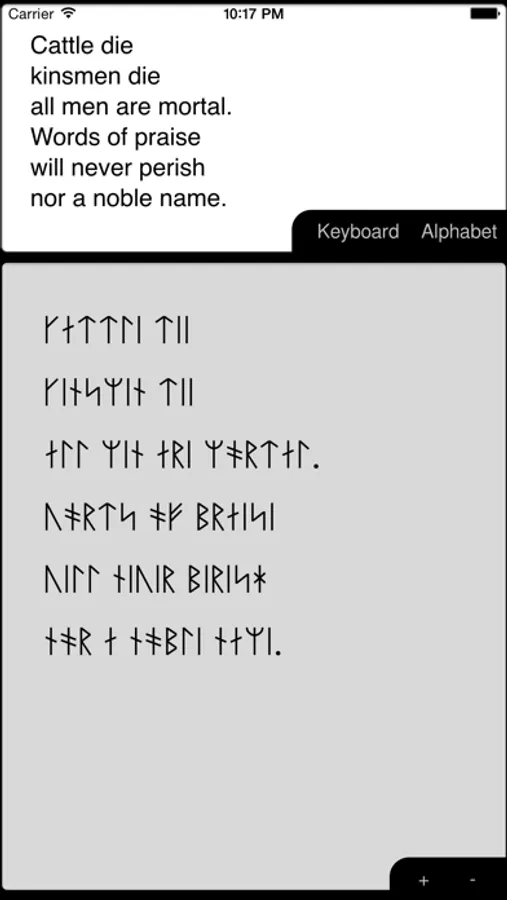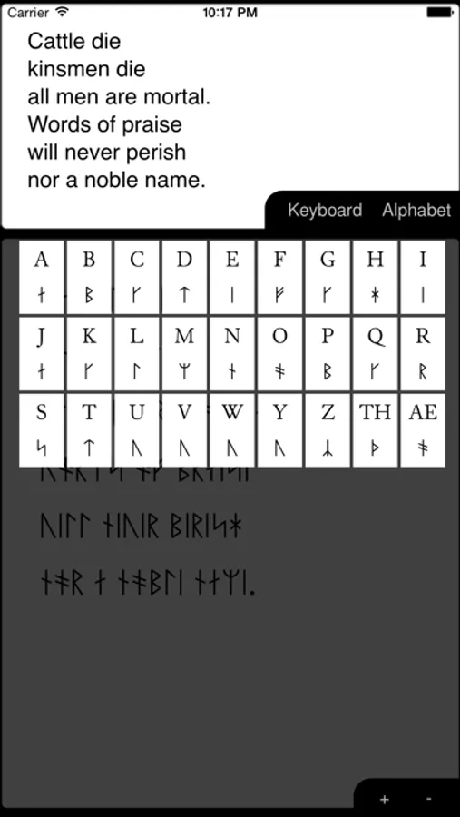 This program translates Latin letters in some ancient or fictional alphabets. You can use the default system keyboard or included rune keyboard.