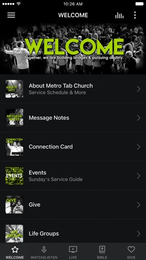 Explore the wide range of resources from connection cards and message notes to video/audio messages and life groups. The Metro Tab Church App is a great way to connect and start the Metro Tab journey. We are better together!