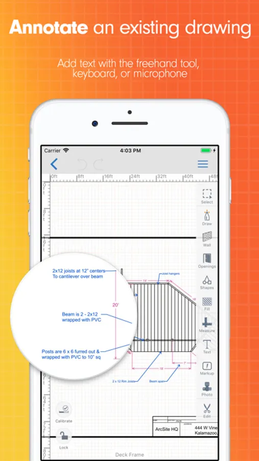 STAND OUT FROM THE COMPETITION - Look professional by showing your teammates and customers impressive CAD-drawn floor plans, estimates, and detailed proposals all from within ArcSite.