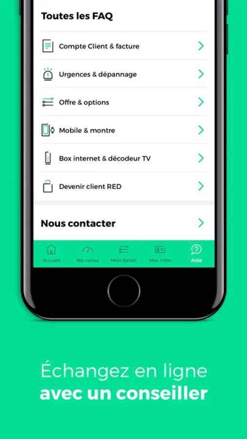 • Trouvez toutes les réponses à vos questions avec une aide en ligne sur la FAQ 24h/24 et 7j/7 et auprès de vos conseillers clients RED du lundi au vendredi de 8h à 21h.