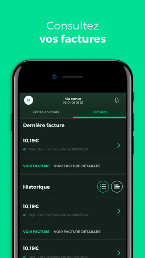o A l’étranger: suivez votre consommation internet, appels et envois SMS/MMS.