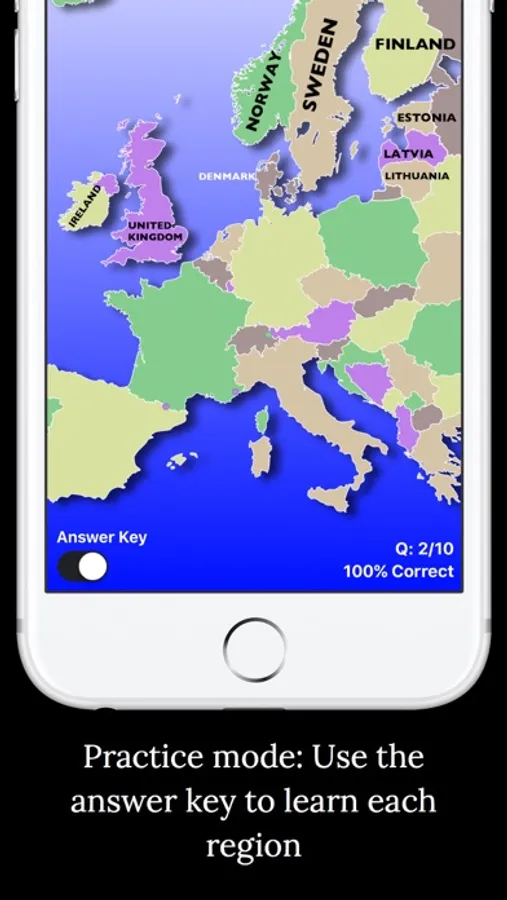 • Practice mode that allows you to study specific areas of a continent to help improve your knowledge