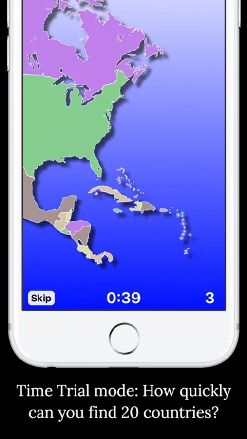 • Game Center-enabled "Time Trial" mode: How fast can you tap 20 countries in order? Compete against players worldwide.
