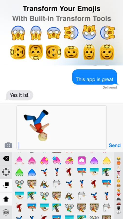 You can scale or rotate the emojis with the built-in transform tools.