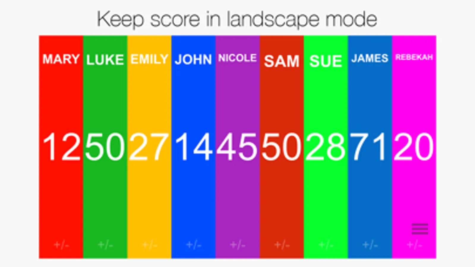 Keep score for up to: (landscape mode)