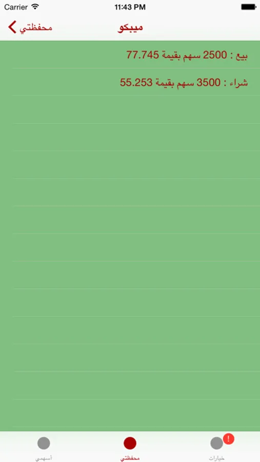 * في حالة بيع او شراء جزء من الاسهم سيقوم التطبيق بعرض سعر السهم الواحد من باقي الاسهم اللتي تمتلكها لتعرف سعر السهم قبل تنفيذ العمليه