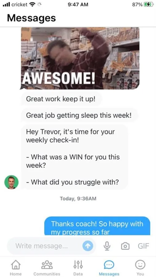 The MyCoach by Coach Catalyst app is designed for clients of trainers who have enrolled in the MyCoach by Coach Catalyst program. The app will send push notifications and prompt clients to answer yes/no question in regards to comply with healthy habits sent by your coach.
