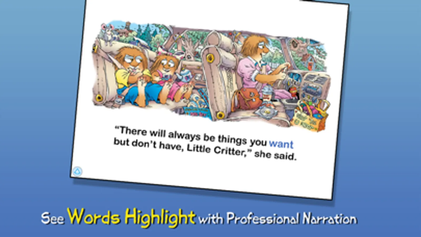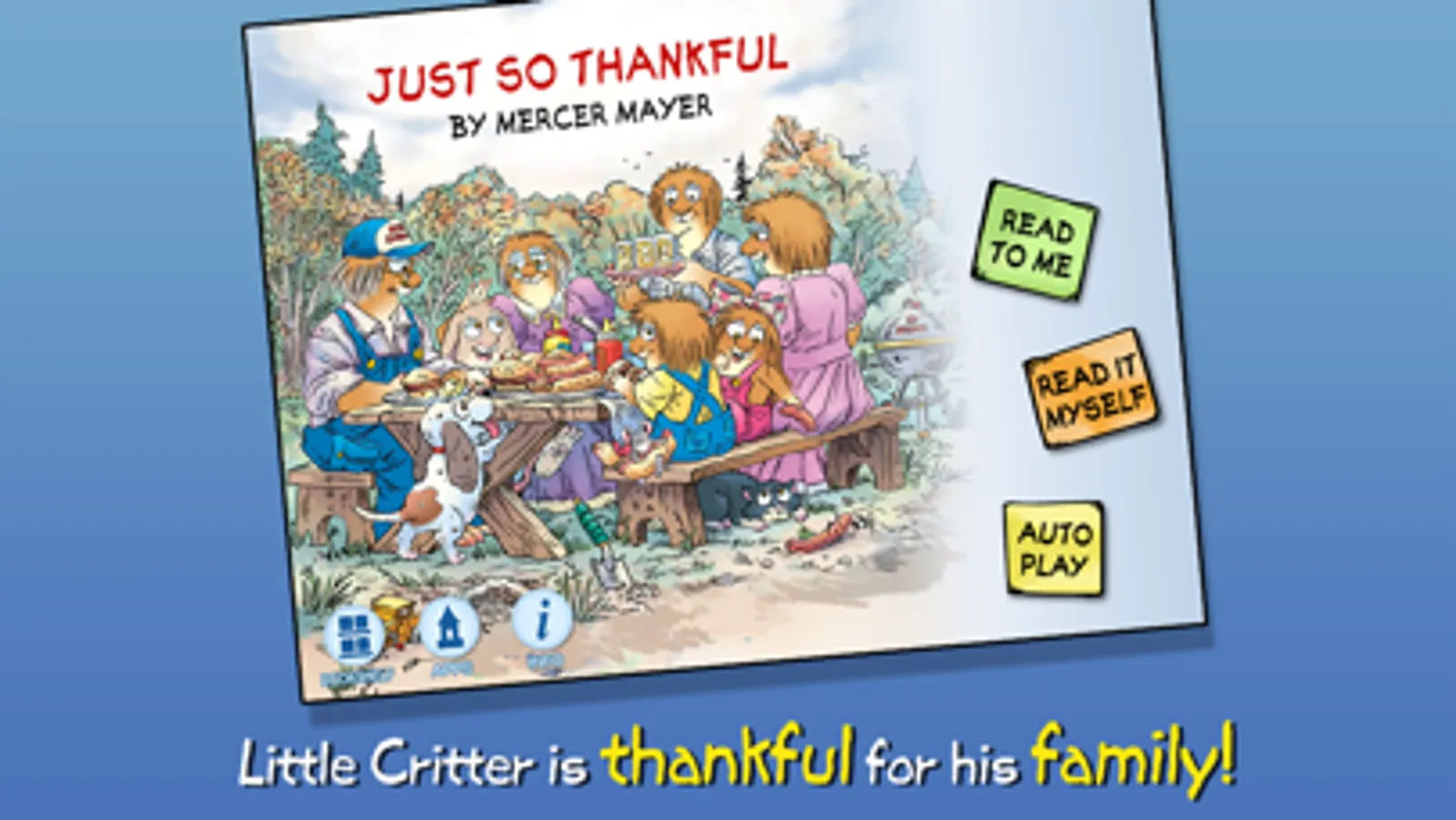 Join Little Critter in this interactive book app as he learns what to be thankful for! Explore pictures, learn new vocabulary, and personalize the story with your own narration. There's a new kid in town who has everything Little Critter wants -- a Super Streak scooter, his own cell phone, and even a limousine! But Little Critter soon realizes that he has something money cannot buy -- a family who loves and adores him.