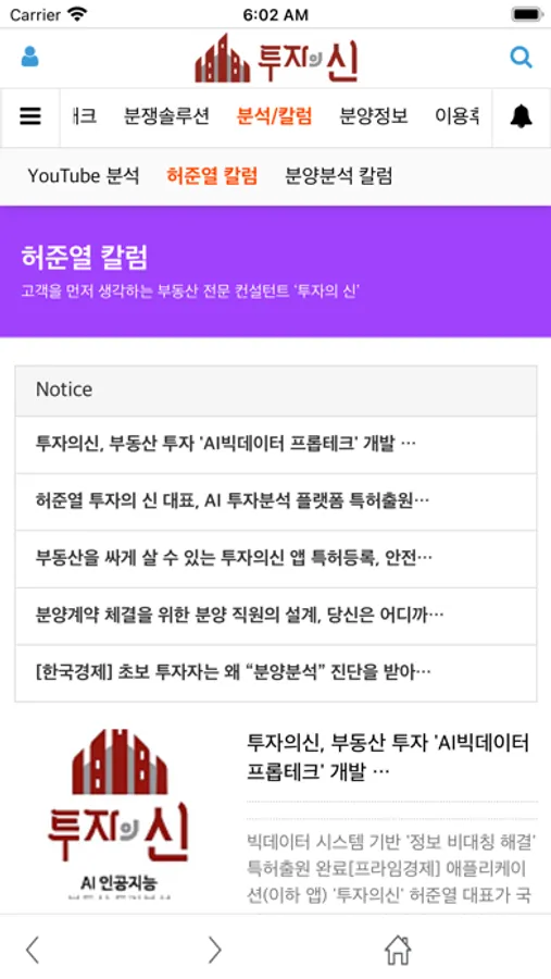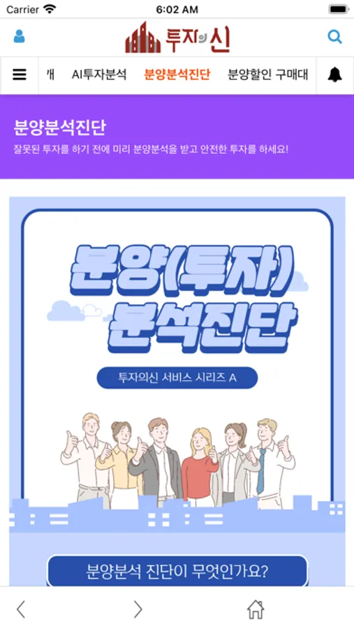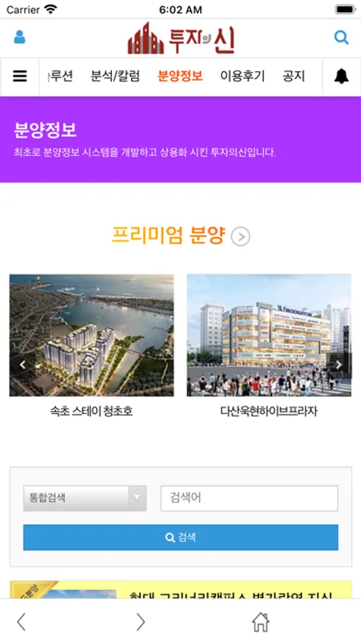 정보의 불모지 같았던 분양시장에서 투자의신은 부동산 투자 분석가와 어플 프로그램 개발자들에 의해 공동 개발 되었습니다.
