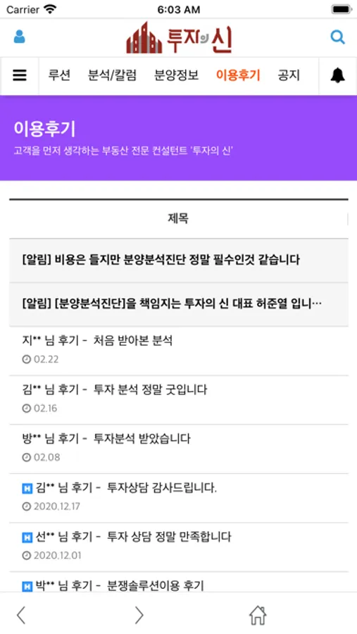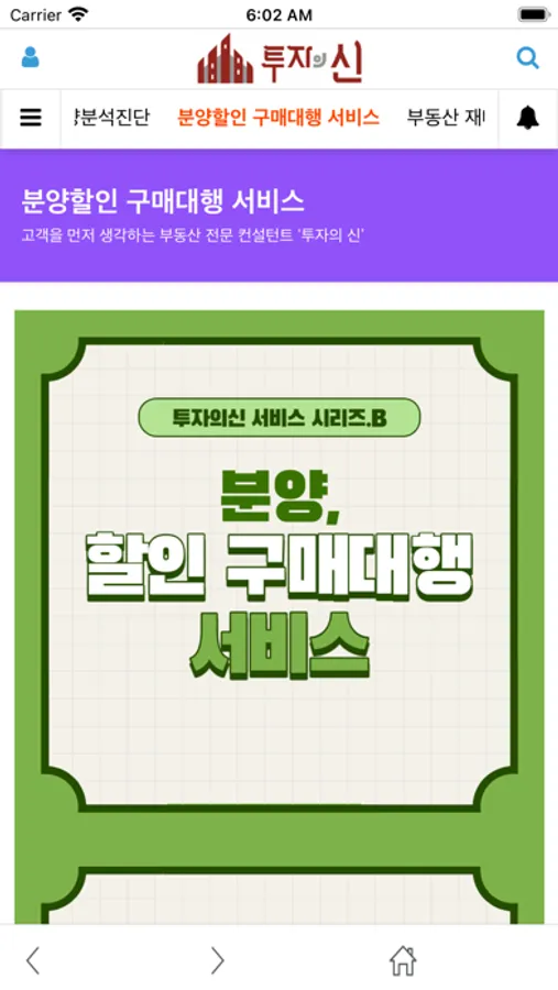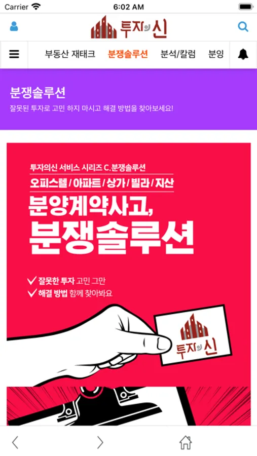 성공적인 부동산 투자로 소비자가 행복한 노후 생활을 보낼 수 있도록 투자의신은 노력할 것입니다. 허위 분양광고는 처음부터 투자의신 어플에 소비자가 볼 수 없도록 차단 시키고 있습니다.