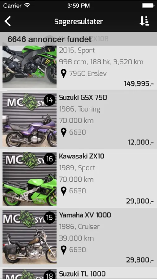 • Hurtig motorcykelsøgning med de 10 vigtigste søgekriterier