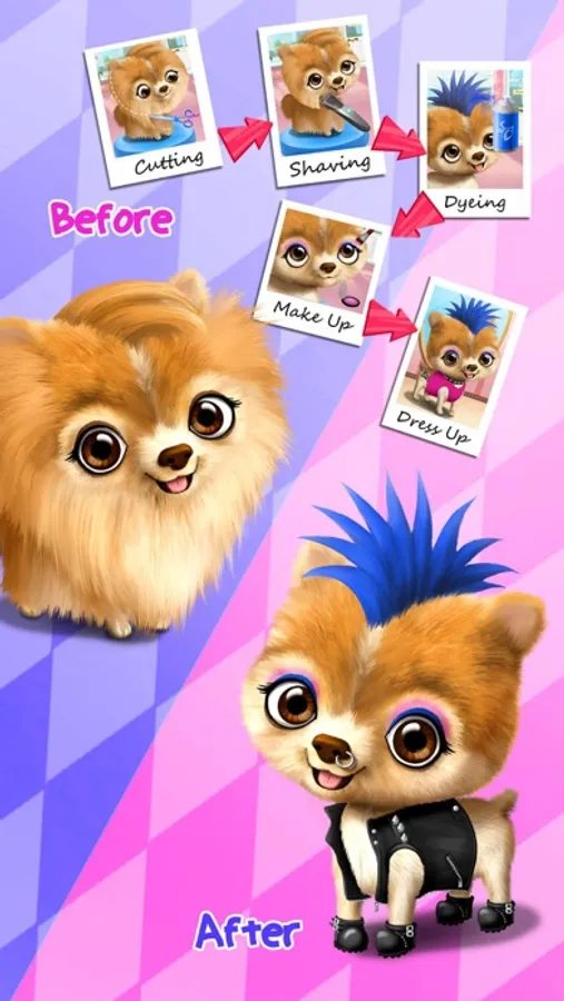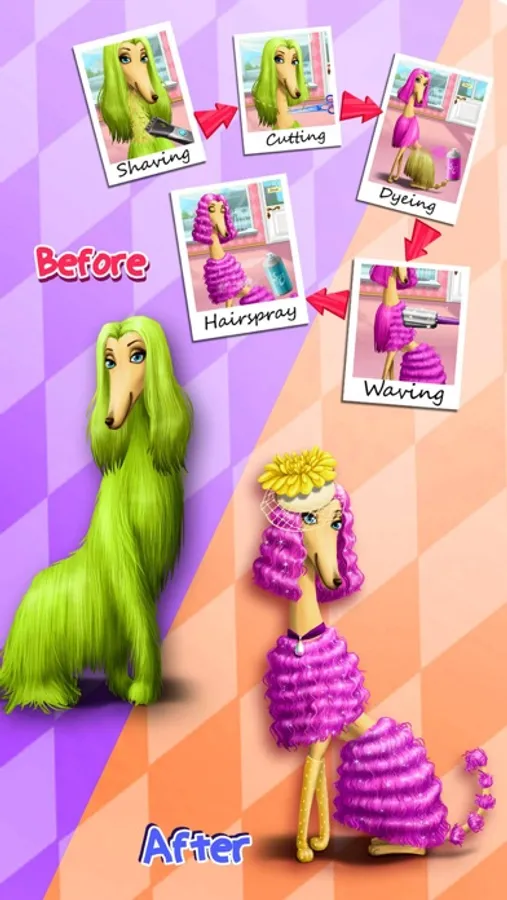 Cut, color, wash, dry and curl hair, shave beards and fur, play pet dress up and show your superb sense of style!
