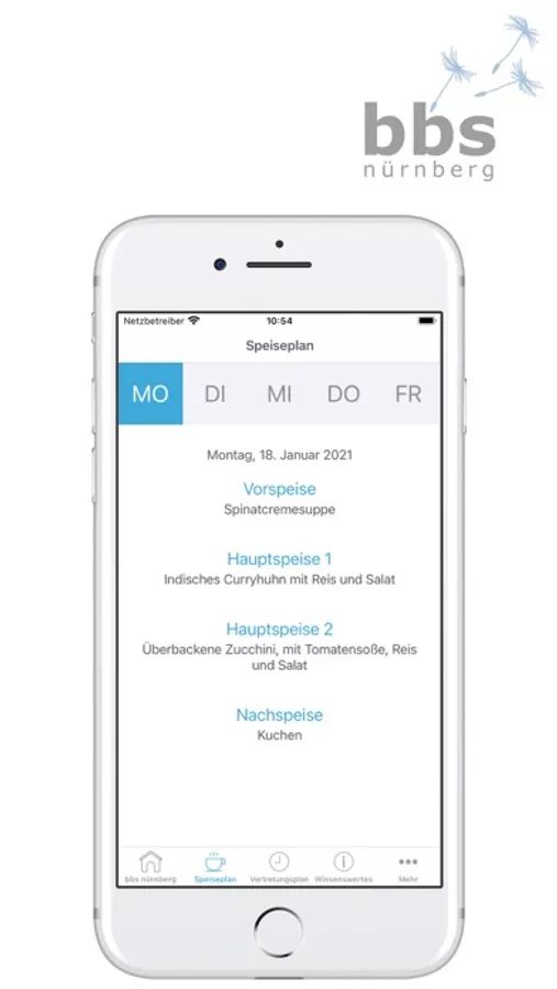 Ein weiteres Feature der App ist der Speiseplan der Kantine, welcher in der App stets griffbereit und aktuell zur Verfügung steht!
