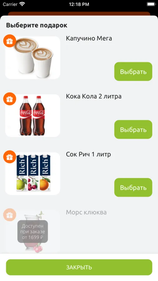 • напитками – капучино, лимонадом, фрешами.
