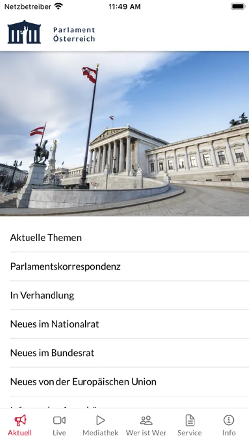 Die App des österreichischen Parlaments bietet aktuelle Informationen aus dem Hohen Haus: zur Gesetzgebung und zu den Abgeordneten des Nationalrates sowie zu den Mitgliedern des Bundesrates. Viele nützliche Funktionen wie Terminkalender, Kontaktstellen, ein virtueller Rundgang oder ein Live-Stream von Parlamentsdebatten machen die App unentbehrlich für politisch interessierte Bürgerinnen und Bürger.
