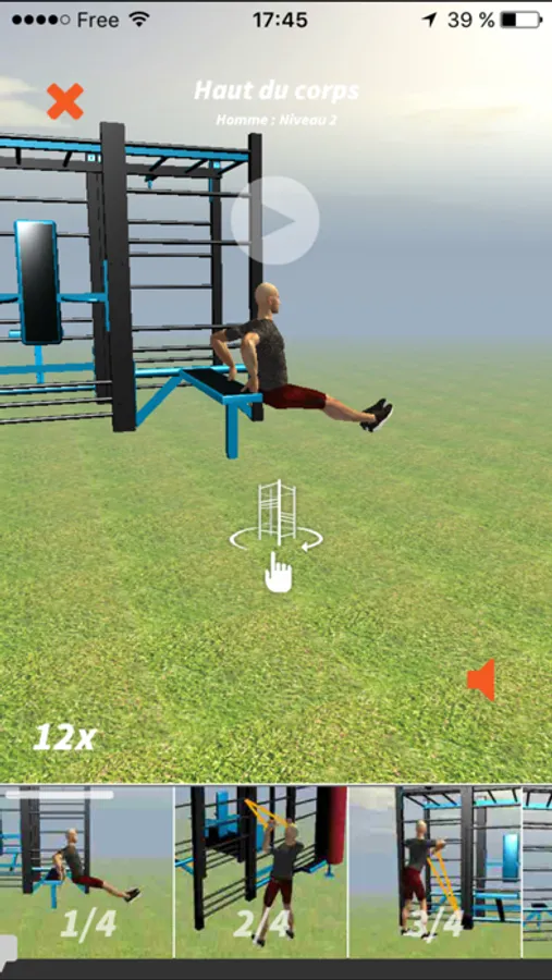 - Touchez l’écran pour faire pivoter le module et visionnez l’exercice avec l’angle que vous souhaitez