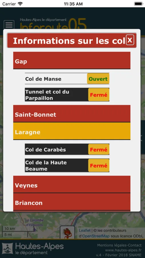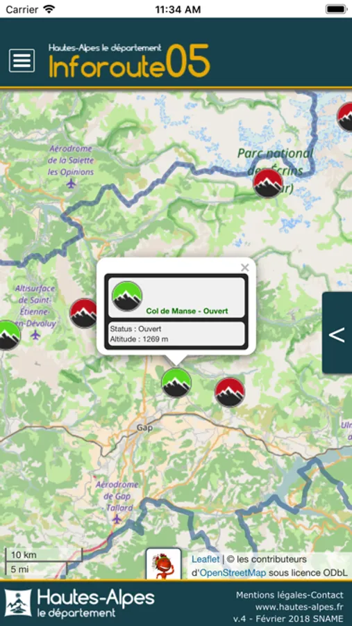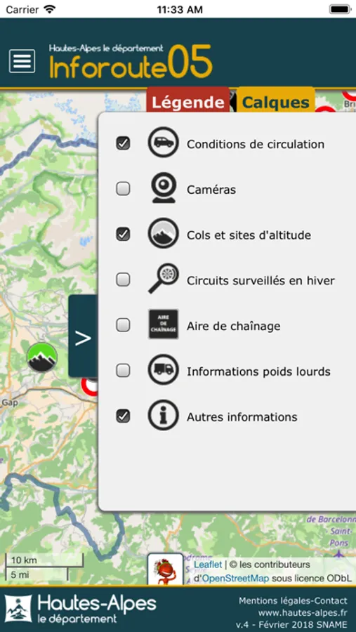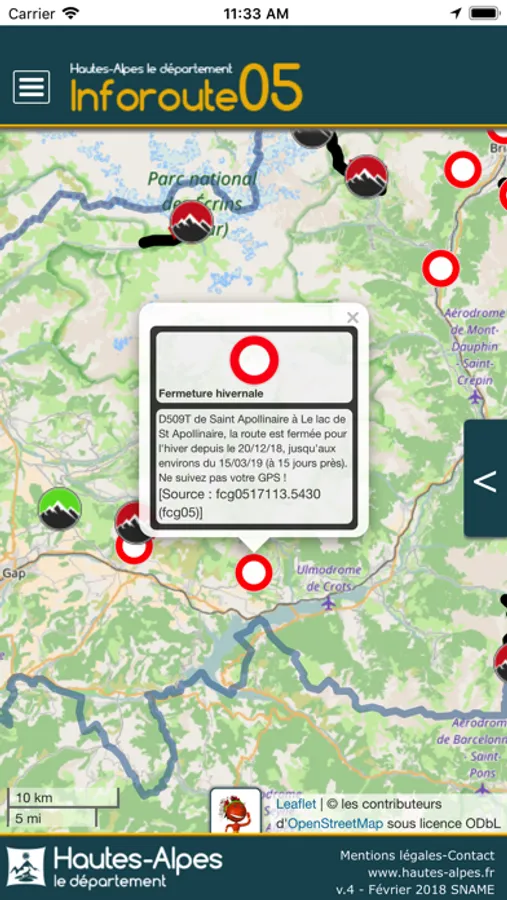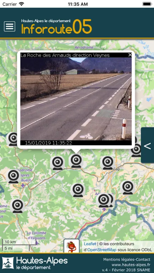 - Cartes des informations routières en temps réel pour le départements des Hautes Alpes.