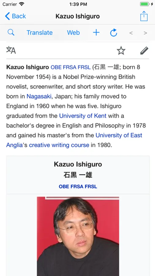 This is an application that displays Wikipedia and its sister projects in full-text search by language. In the Wikipedia site, articles matching the search results are displayed. In this application, it is easier to find the item you want to know if the keyword is ambiguous by first displaying the list of articles including keywords.