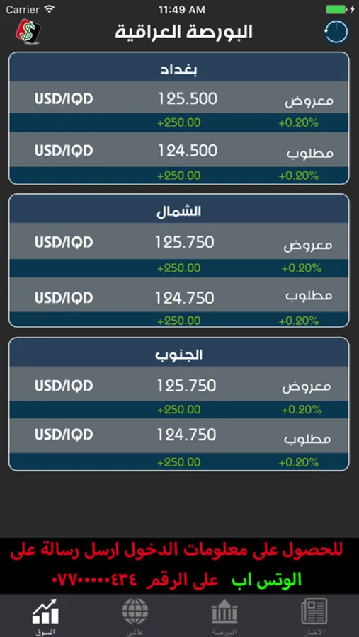 Iraq Borsa app, previously known as Borsat Baghdad, is an economic news application reporting real-time exchange rates changes from financial markets and platforms in Iraq