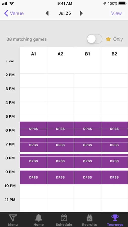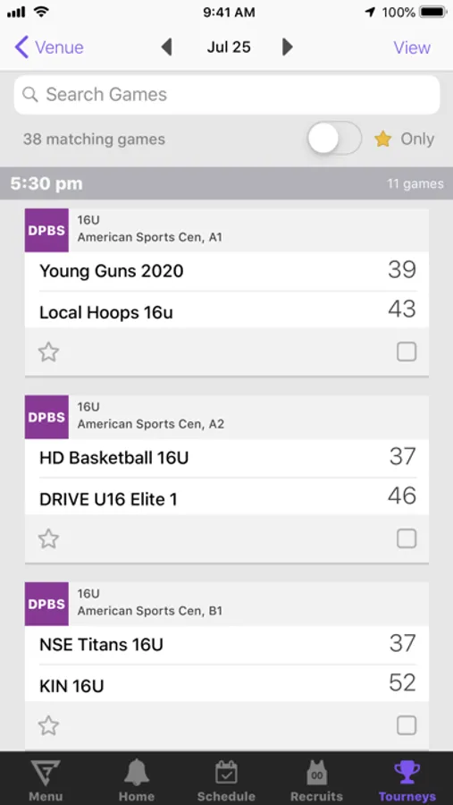 FastRecruit also simplifies workflows during the Live Period by providing a list of tournaments with venue grids, game times and locations, a mobile iOS app for documenting notes and evaluations during the games, and alerts to track any changes to the schedule.
